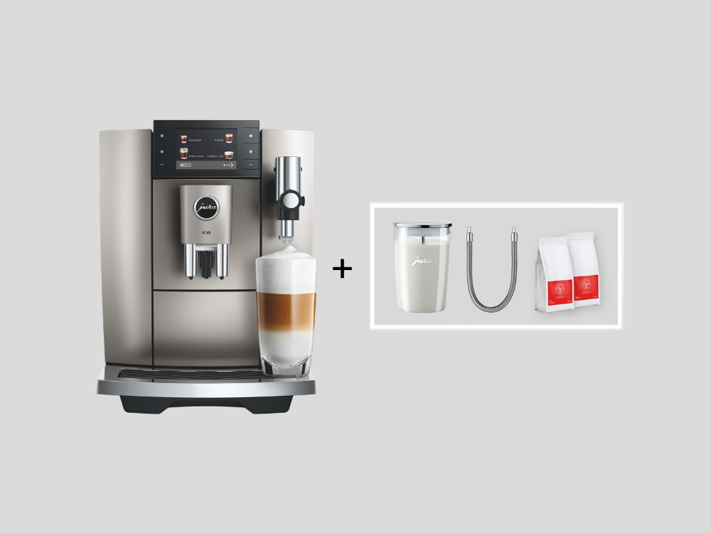 Receive a bonus JURA Gift Pack, including a Jura glass milk container, stainless steel milk pipe set, and 2kg coffee beans, when you purchase any eligible* JURA coffee machine between 6 April and 17 May 2026 through redemption.